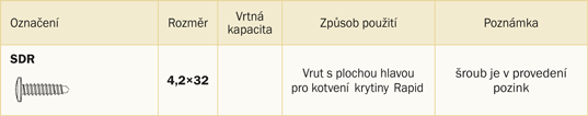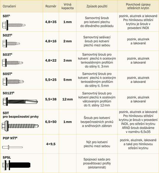 Pro snadné a bezpečné kotvení našich výrobků k podkladu i mezi sebou je doporučeno užití originálního kotevního a spojovacího materiálu. Jednotlivé typy, včetně popisu použití, naleznete v tabulce.