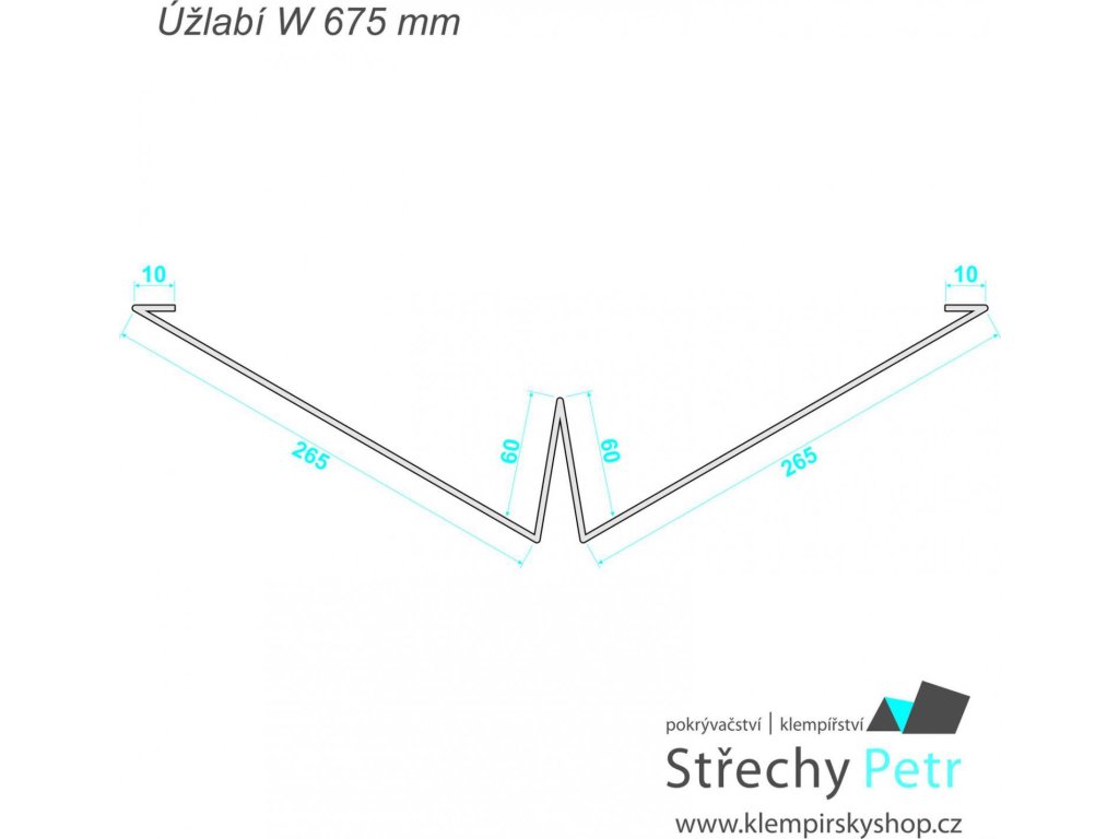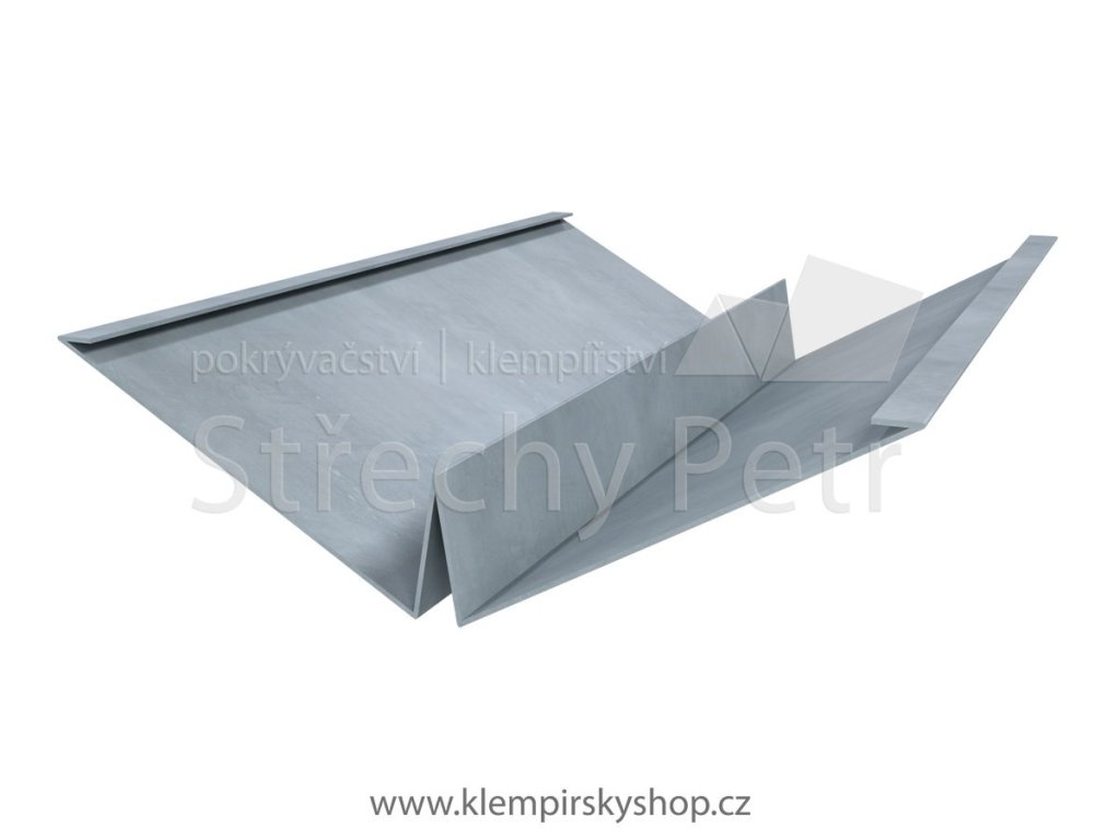 Úžlabí - tvar W, 670mm v rozvinu. Materiál pozinkovaný plech 0,55mm. Cena je za bm (běžný metr).