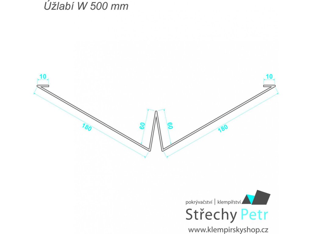 Úžlabí - tvar W, 500 mm v rozvinu. Materiál měď 0,55 mm. Cena je za bm (běžný metr).